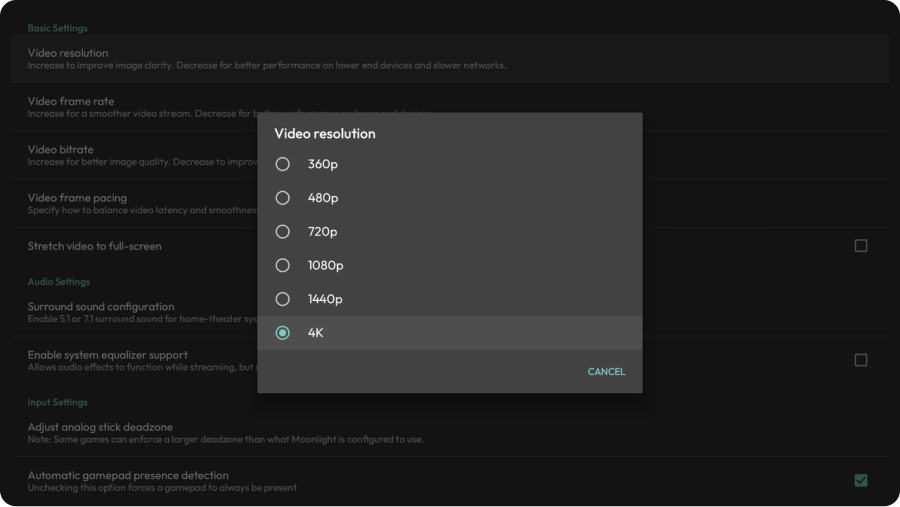 PC で ReShade と Depth3D を設定した後は、Moonlight と Sunshine を使ってリモートプレイもできます。 ネックバンドのStoreページに移動し、Moonlight をダウンロード、 PC にSunshine をインストール&セットアップしてください。セットアップ方法については、Sunshine の公式資料を参照してください。